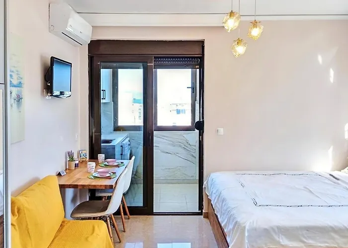 O 7-Modern City Center Studio With Sea View! de 37 m² inclui cozinha totalmente equipada, que tem refrigerador e forno. A estação de comboios Diagoras of Rhodes está a 5 minutos de distância a pé. Terraço está disponível para os hóspedes relaxarem após um dia agitado.